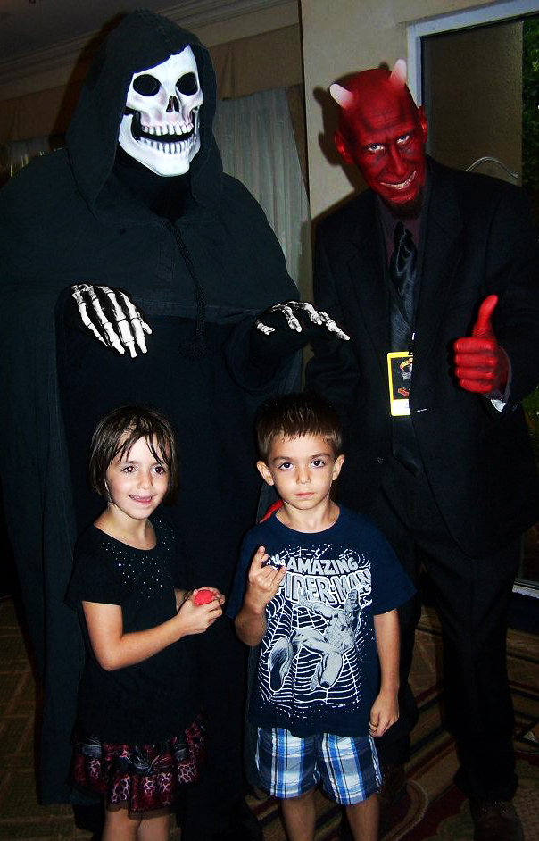 Oh, and here’s myself and “The Red Guy” (along with a pair of Angels’ Fans) to say “Have a fun, safe, and terrifying day!”