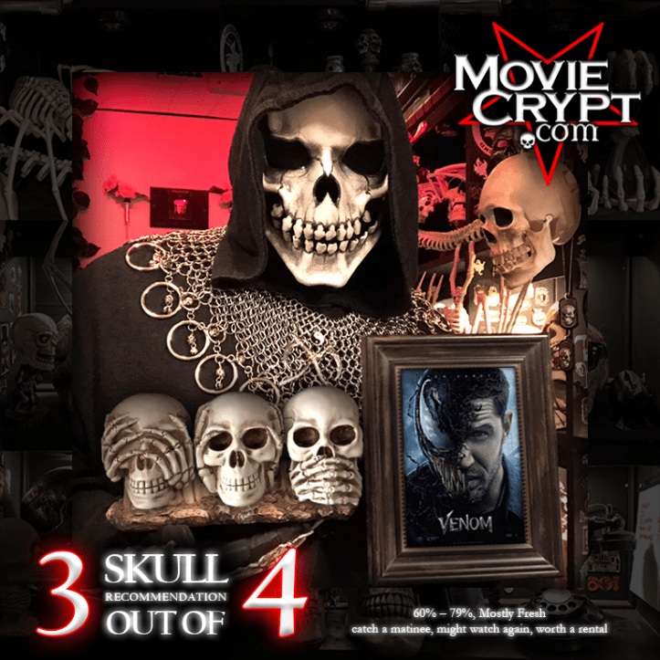 Venom is rated PG-13 for intense sequences of sci-fi violence and action, for language, and so many snacks… so little time.