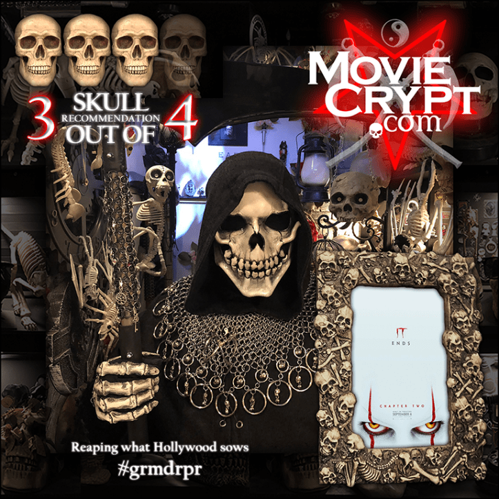 It shouldn’t be a mystery why director Andy Muschietti keeps referencing A Nightmare On Elm Street upon a cinema marquee in both chapters of It. Derry is Springwood, a town that mirrors the monster occupying and inhabiting it. This incarnation of Pennywise inhabits the spirit of Freddy Krueger: terrorizing youth by preying on their secret fears with nightmarish illusions and shape-shifting. Of all eighties horror franchises, Elm Street stood out that Freddy’s victims rarely transgressed and often aggressively fought back, but audiences expecting much more Pennywise may be disappointed the story centers away from the entity this time around. While Chapter One felt very complete as a stand-alone film, the second half’s non-linear flashbacks to finish the story suffers from running-time fatigue while rewarding the completionist who hangs onto every detailed breadcrumb.