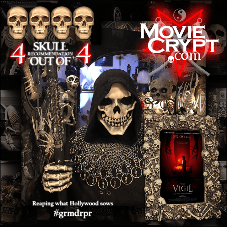 The seeds of the story are planted in a Holocaust flashback, but what transpires runs far deeper than just physical or emotional trauma. While everything looks innately old-world, both the writer-director and the spirit itself prove to be tech-savvy, which isn’t exactly the main character’s forte. Utilizing practical effects, post-production manipulation, and an exceptional otherworldly soundtrack to create tension, the plot surprises with doing the unexpected before returning to what one dreads, mixing it up to keep viewers on the edge of their seat. The makers of The Babadook are credited in the trailer, a film that explored similar themes of personal demons, but The Vigil manages to do much more with even less, and that’s quite an accomplishment for a debut filmmaker. Go ahead; look up Tefillin after viewing, because if you’re not Jewish, you’re going to want to know.