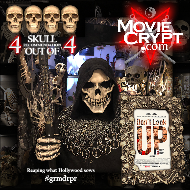 When Kate Dibiasky (Jennifer Lawrence) discovers a previously unknown comet hurtling through our solar system, she calls in her mentor Dr. Randall Mindy (Leonardo DiCaprio) to confirm it. Unfortunately, “Comet Dibiasky” is on a collision course with Earth in six month’s time, and no one else knows. Coordinating with Dr. Teddy Oglethorpe (Rob Morgan), the astronomers report their findings to President Orlean (Meryl Streep) and her nepotistic Chief of Staff (Jonah Hill), who take a position of “wait and assess” while staring down the barrel of an impending midterm election. Forbidden to talk about their findings, Kate and Randall decide to go public, but amid personal agendas, propaganda, and people unwilling to accept a doomsday scenario, it doesn’t seem to matter “the truth is out there.”