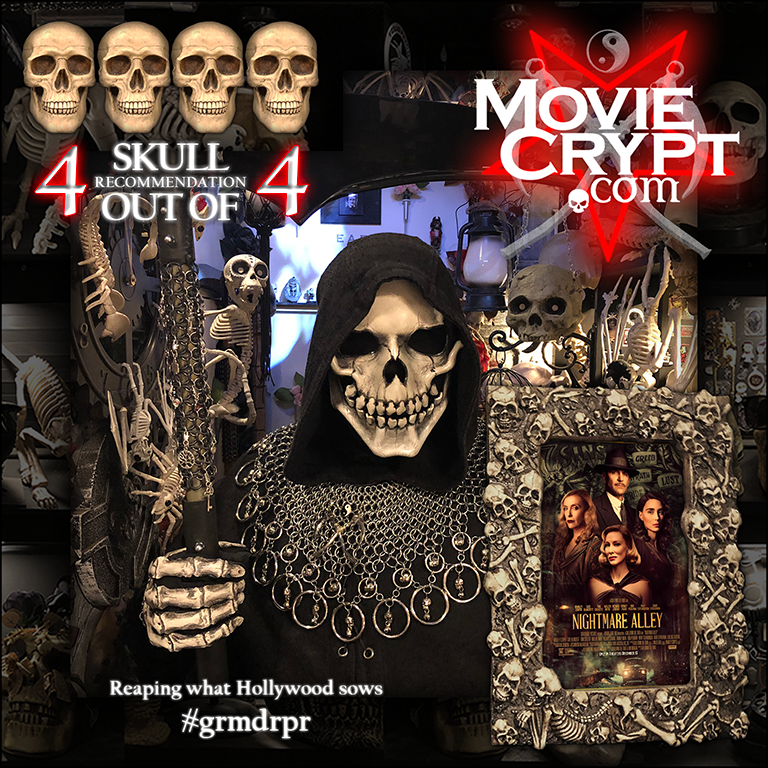 After the death of his father, Stanton “Stan” Carlisle (Bradley Cooper) makes his way out into the big world, stumbling across a sideshow carnival. After watching “the geek show” narrated by owner Clem Hoatley (Willem Dafoe), Stan accepts a work offer and ends up traveling with them. He becomes infatuated with the mentalist act performed by Zeena (Toni Collette) and her assistant Pete (David Strathairn), but he only has eyes for the innocent Molly (Rooney Mara), the carnival’s Electric Girl. With a passion for the performance but more a desire for power and wealth, Stan learns the routine and lures Molly to leave the carnival for the big city, reinventing himself and earning success. Unfortunately, an encounter with Dr. Lilith Ritter (Cate Blanchette) convinces Stan wealthier marks like Ezra Grindle (Richard Jenkins) are ripe for the taking — with her help, of course — forgetting old Pete’s warnings: the dangers of taking “the spook act” too far.