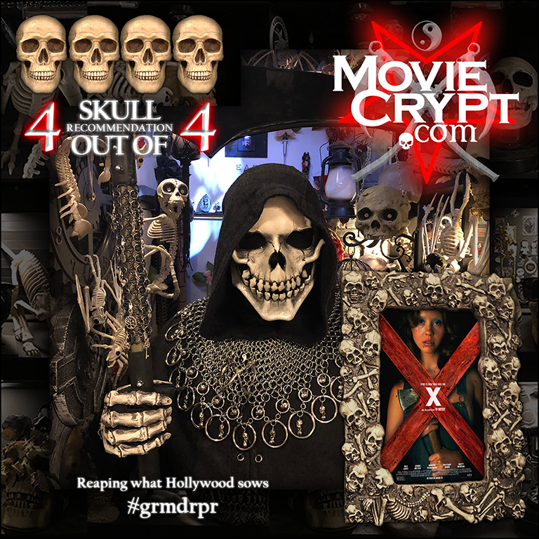 X is best described as a self-aware exploitation of an exploitation film: art house horror masquerading as low-budget slasher fare. After a quick introduction, the principle characters are shown as both all-business and shockingly decent people… even the slightly slimy club owner who happily makes baloney sandwiches for his hungry cast and crew. The lightning pace engrosses viewers into who these people are even while setting them up for the coming bloodbath, including some amazingly human moments almost making one forget what kind of film this is. When the first body hits the ground, what’s happening isn’t as significant as the why of it making viewers’ skin crawl, confronting eventuality head-on without leaning on the supernatural as a crutch. As the characters might phrase it, this is some deep shit on every level.